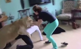 Λιοντάρι επιτίθεται σε άνδρα μέσα στο σπίτι (βίντεο)