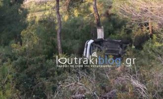 Αυτοκίνητο με τρεις επιβάτες έπεσε σε γκρεμό στο Λουτράκι