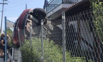 Αυτοκίνητο «προσγειώθηκε» σε αυλή σπιτιού στη Θεσσαλονίκη