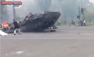 Το βίντεο είναι από τις πολύνεκρες οδομαχίες που έγιναν την Παρασκευή στη Μαριούπολη της ανατολικής Ουκρανίας μεταξύ ρωσόφωνων και ουκρανικών…