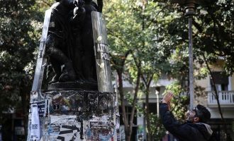 Εξάρχεια: Έκλεψαν ασπίδες και κράνη αστυνομικών και έντυσαν αγάλματα