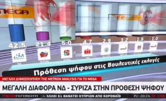 Στο 21% διαμορφώνεται η διαφορά ΝΔ-ΣΥΡΙΖΑ στη δημοσκόπηση της Metron Analysis για λογαριασμό του κεντρικού δελτίου ειδήσεων του Mega. Συγκεκριμένα…
