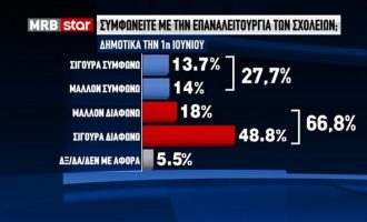 Δημοσκόπηση MRB: Σχεδόν 7 στους 10 Έλληνες θέλουν νέα κόμματα – ΝΔ 22% – Αναποφάσιστοι 24,3%