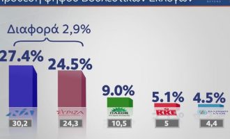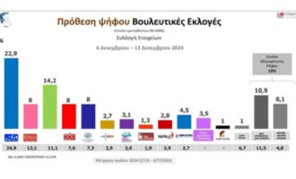 Δημοσκόπηση: Η ΝΔ στο 20,4% – Αδιευκρίνιστη ψήφος 24,1%