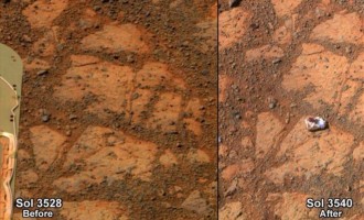 Τμήμα μεγαλύτερου βράχου που έσπασε και παρασύρθηκε από το Opportunity είναι η μυστηριώδης πέτρα που εντοπίστηκε από το διαστημικό όχημα…
