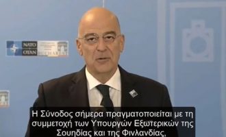 «Η Σύνοδος σήμερα πραγματοποιείται με τη συμμετοχή των υπουργών Εξωτερικών της Σουηδίας και της Φινλανδίας, τους οποίους καλωσορίζουμε στη ΝΑΤΟϊκή…