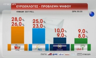 Exit poll τελικό: ΣΥΡΙΖΑ 26 – 28% και ΝΔ 23 – 25%