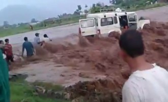 Ο οδηγός υπερεκτίμησε τις δυνατότητες του αυτοκινήτου και θέλησε να περάσει το φουσκωμένο ποτάμι στο Νεπάλ. Πολύ γρήγορα όμως κόλλησε…