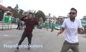 Ομάδα νεαρών που κινηματογραφούσε σε κεντρικό σημείο της πρωτεύουσας του Νεπάλ, Κατμαντού, βίντεο για το YouTube κατέγραψε τη στιγμή του…