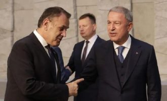 Ο υπουργός Εθνικής Άμυνας Νίκος Παναγιωτόπουλος συνομίλησε με τον Τούρκο ομόλογό του Χουλουσί Ακάρ μετά την οικογενειακή φωτογραφία στη Σύνοδο…
