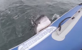 Τρόμος στη θάλασσα: Ο καρχαρίας αρχίζει να τρώει το φουσκωτό (βίντεο)