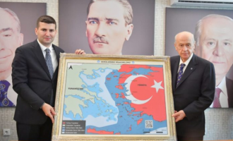 Μετά τις αντιδράσεις στην Ελλάδα για την παράδοση στον ακροδεξιό Ντεβλέτ Μπαχτεσλί «χάρτη» όπου περιλαμβάνει όλα τα νησιά του Αιγαίου…