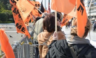 Καθηγητές, μέλη της ΟΛΜΕ που συμμετέχουν στη σημερινή 24ωρη απεργία της ΑΔΕΔΥ, αλυσοδέθηκαν μπροστά από τα κιγκλιδώματα που βρίσκονται έξω…