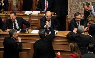 Η φωτογραφία είναι από το βράδυ της συζήτησης της περίφημης εργαλειοθήκης του ΟΟΣΑ όπου οι κυβερνητικοί βουλευτές περνούν από τα…