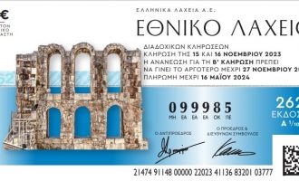 Στις 15 Νοεμβρίου ξεκινούν οι κληρώσεις της 262ης έκδοσης του Εθνικού Λαχείου – Πώς να διεκδικήσετε το εγγυημένο έπαθλο του 1.000.000 ευρώ