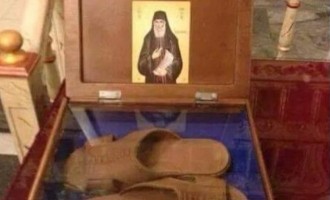 Πρωτοφανής δεισιδαιμονία – Έβγαλαν σε προσκύνημα τις πλαστικές παντόφλες του Παΐσιου