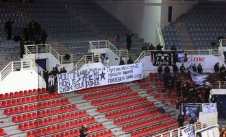 Οπαδοί του ΠΑΟΚ σήκωσαν πανό υπέρ Πούτιν: Δείξε τη δύναμή σου