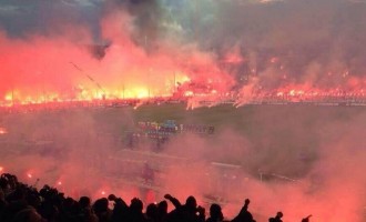 Φωτοβολίδες και καπνογόνα εκτοξεύθηκαν από τους φίλους του ΠΑΟΚ, κατά την είσοδο των δύο ομάδων στον αγωνιστικό χώρο της Τούμπας,…