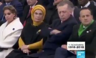 Πάλι κοιμήθηκε δημοσίως ο Ερντογάν – Αυτή τη φορά «τον πήρε» στην παρέλαση του Μακρόν (βίντεο)