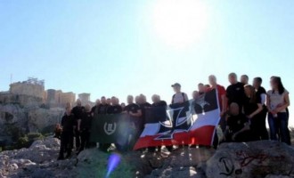 Γερμανοί νεοναζί και απόγονοι ταγματασφαλιτών με ναζιστική σημαία στην Ακρόπολη