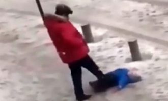 Πατέρας κλωτσάει τον γιο του επειδή έπεσε στο χιόνι (βίντεο)