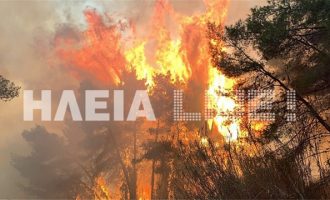 Μαίνεται ανεξέλεγκτη η μεγάλη φωτιά στο δάσος της Στροφυλιάς στην Ηλεία