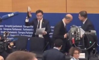 Ένας ευρωβουλευτής της ακροδεξιάς Λέγκα, ενός εκ των δύο κομμάτων στην κυβέρνηση συνασπισμού της Ιταλίας, έβγαλε το παπούτσι του και……