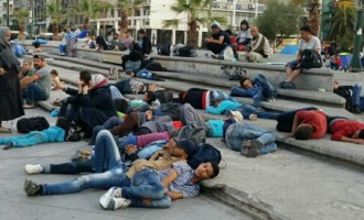 Σύροι μετανάστες έστησαν «καταυλισμό» στην Ομόνοια (φωτογραφίες)