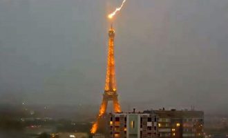 Την Δευτέρα είχε κακοκαιρία στο Παρίσι, και ο Πύργος του Άιφελ δεν «έφαγε» μόνο βροχή. Κάμερες από το σημείο κατέγραψαν…