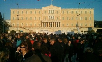 Χιλιάδες πολίτες διαδηλώνουν έξω από τη Βουλή, στην πλατεία Συντάγματος, ενώ ο ΣΥΡΙΖΑ αποχώρησε από τη συνεδρίαση της Βουλής. Δείτε…