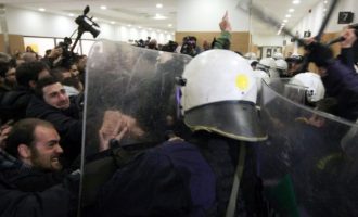 Επεισόδια στο Ειρηνοδικείο Αθηνών για τους πλειστηριασμούς – Έπεσαν ξύλο και χημικά