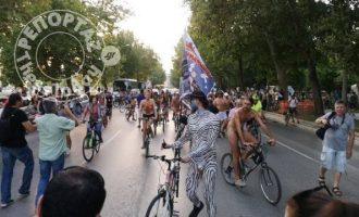 Tα πέταξαν όλα και έκαναν ποδήλατο γυμνοί στο κέντρο της Θεσσαλονίκης στην 11η Διεθνή Γυμνή Ποδηλατοδρομία. Οι ποδηλάτες έκαναν στάση…