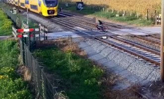 Ποδηλάτης αποφεύγει τρένο για χιλιοστά του δευτερολέπτου (βίντεο)