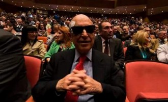 Με μαύρο γυαλί και το τραύμα στο κεφάλι εμφανές, λόγω του επιδέσμου, από το πρόσφατο πέσιμό του, παρακολούθησε τον νομπελίστα…