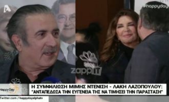 Συμφιλίωση: Λάκης Λαζόπουλος και Μιμή Ντενίση ποζάρουν αγκαλιά και φιλιούνται (βίντεο)