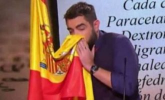Ισπανός κωμικός φταρνίστηκε και φύσηξε τη μύτη του με τη σημαία (βίντεο)
