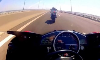 Πρόκειται για τρέλα. Ο οδηγός της μοτοσικλέτας τρέχει για πολύ ώρα με ταχύτητα σταθερά πάνω από 200 χιλιόμετρα ώσπου κάποια…
