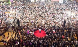 Η σημερινή σας παρουσία δε θυμίζει συγκέντρωση ευρωπαϊκών εκλογών, η σημερινή σας παρουσία είναι ένα ξέσπασμα δημοκρατίας και αξιοπρέπειας, ξέσπασμα…