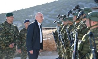 Ο Νίκος Δένδιας με τη φρουρά στο Αγαθονήσι