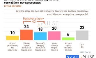 Μειώνεται η ανησυχία των Ελλήνων για την επιδημία του κορωνοϊού μετά την άρση των μέτρων σύμφωνα με δημοσκόπηση της Puls…