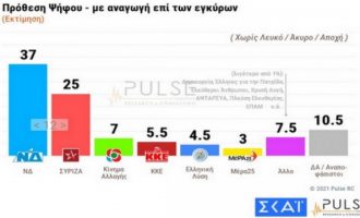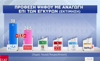 Στις 13,5 μονάδες διατηρείται το προβάδισμα της Νέας Δημοκρατίας έναντι του ΣΥΡΙΖΑ, σύμφωνα με δημοσκόπηση της Pulse, που διενεργήθηκε για…