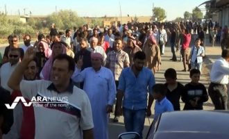 Αραβικές φυλές διαδήλωσαν την Τετάρτη στην παραμεθόριο πόλη Ρας Αλ Αΐν, στη βορειοανατολική Συρία, στην επαρχία της Χασάκα, για να…