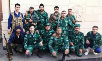 Τουρκμένοι της Συρίας, που μεταφέρθηκαν από την Τουρκία στο Αζερμπαϊτζάν να πολεμήσουν τους Αρμένιους στο Ναγκόρνο Καραμπάχ, ποζάρουν «αναμνηστικά» μπροστά…