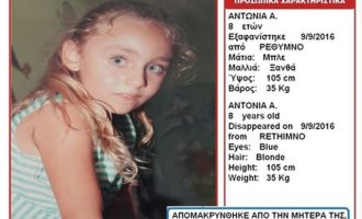 Αγωνία για την 8χρονη Αντωνία που εξαφανίστηκε από το Ρέθυμνο