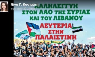 Η Νίνα Κασιμάτη κατακεραυνώνει τους «αλληλέγγυους» που αποσιωπούν τον βρώμικο ρόλο της Τουρκίας στη Μέση Ανατολή
