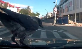 Το πουλί έρχεται και κάθεται στο παρμπρίζ του αυτοκινήτου που περιμένει σε φανάρι της Μόσχας στην Ρωσία. Ο οδηγός γυρνάει…