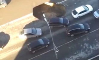 Το χάρο με τα μάτια τους είδαν οι οδηγοί των αυτοκινήτων στη Ρωσία όταν σε ώρα μποτιλιαρίσματος, άνοιγε τεράστια τρύπα…