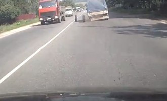 Και ξαφνικά έφυγαν οι ρόδες από το… φορτηγό (βίντεο)