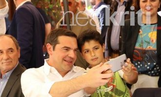Οι σέλφι του Τσίπρα με τα παιδιά και πασίγνωστo ποδοσφαιριστή στην Κρήτη (φωτο)