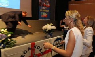 Με μία… επική τούμπα φιλοδώρισε τους παρευρισκόμενους και τις κάμερες ο Σίλβιο Μπερλουσκόνι κατά την προεκλογική του ομιλία στη Γένοβα….